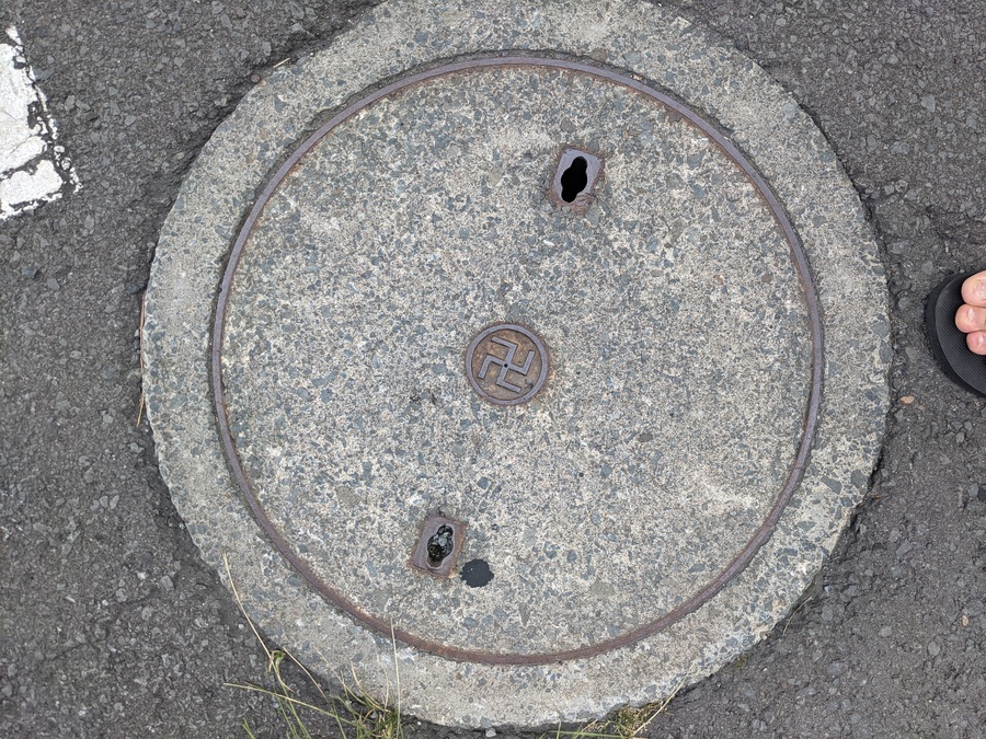 Lots of manji on manholes in Hirosaki.