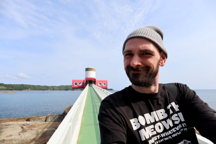 A dude stopped on his motorbike trip to check out the tip of Shikoku. Bit jealous of his bike adventure.