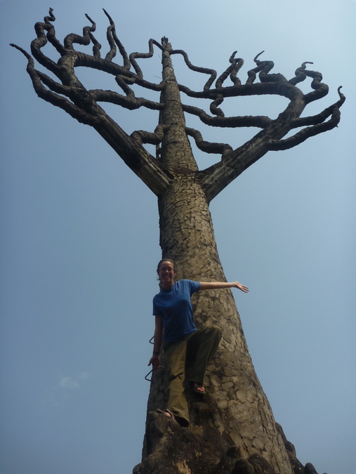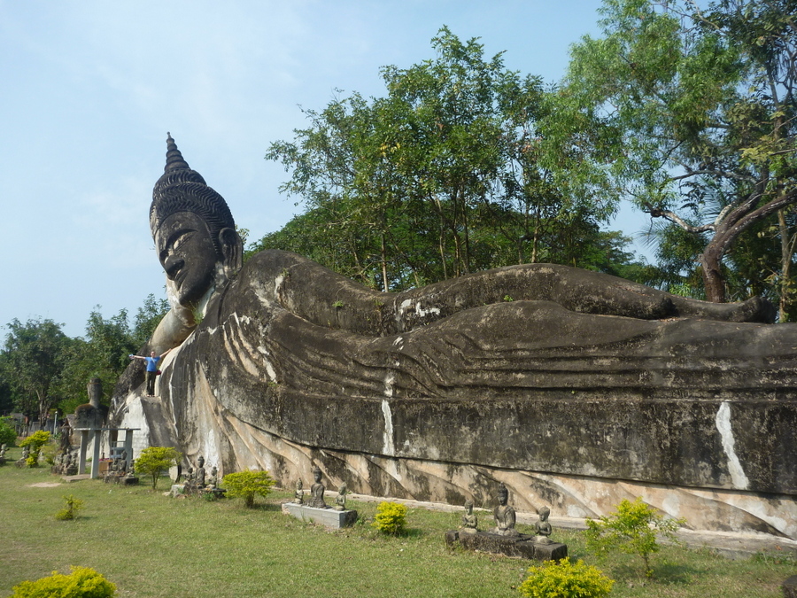 Just on the outskirts of Vientiane, we found Xiang Khouan, also known as Buddha Park. The park is filled with impressive, strange sculptures from one artist. And it all starts with this bulbous cave! You can actually go inside and get lost while looking for your way to the top!